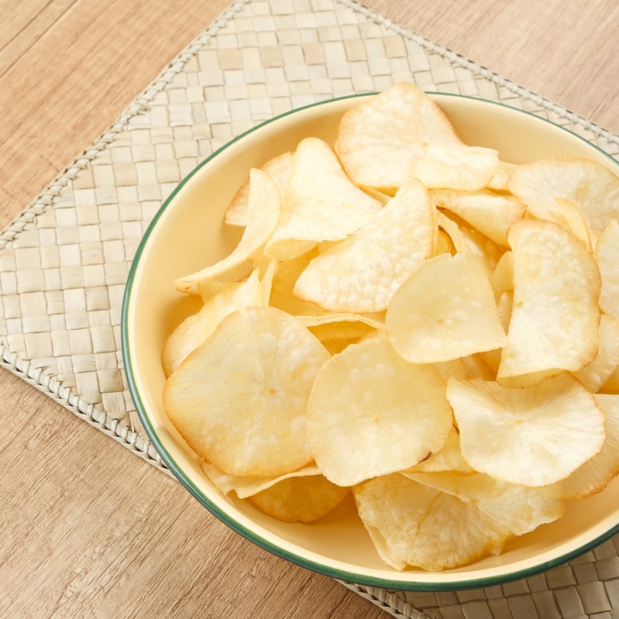 Cassava chips are a popular snack made from cassava, a root vegetable known for its starchy texture and mild flavor. These crispy chips are a favorite in many cultures and are often enjoyed as a healthier alternative to traditional potato chips.